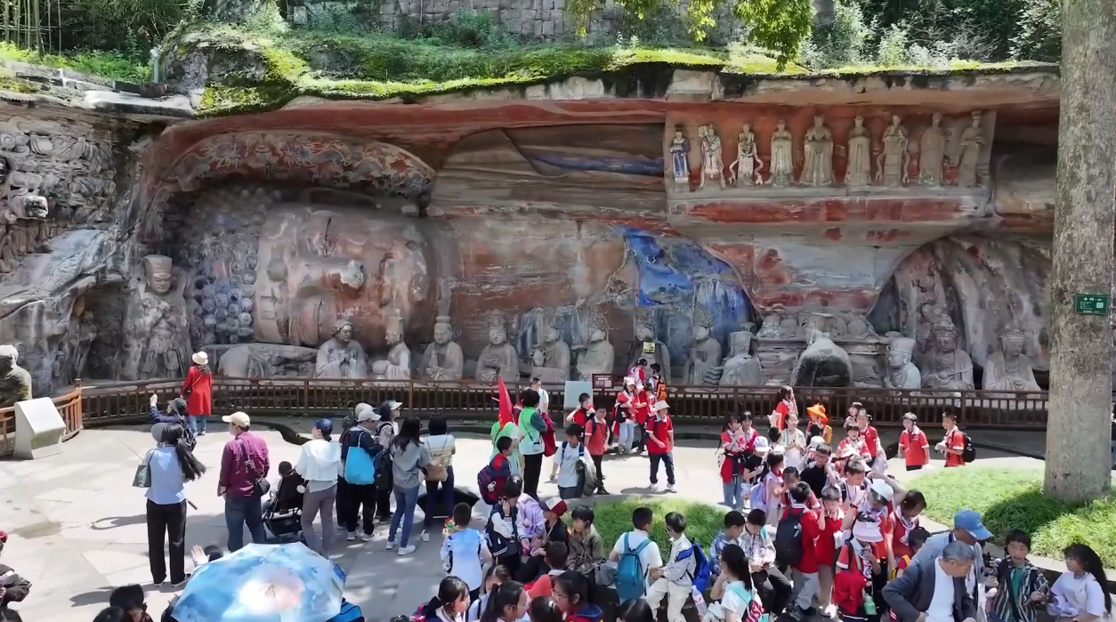 当晚的比赛不仅是一场体育竞技的胜利,更是大足文旅融合的生动实践。据统计,本场比赛吸引了超过2万名观众到场,更是有13.4万人观看大足融媒抖音号、大足融媒视频号的线上直播,一起见证大足石刻队的连胜。赛场之外,特色美食、万瓶本地精酿啤酒免费供应、观赛免费赏石刻等福利,更是吸引了不少外地游客专程而来,开启“白天赏石刻 夜晚看球赛”的旅程 。